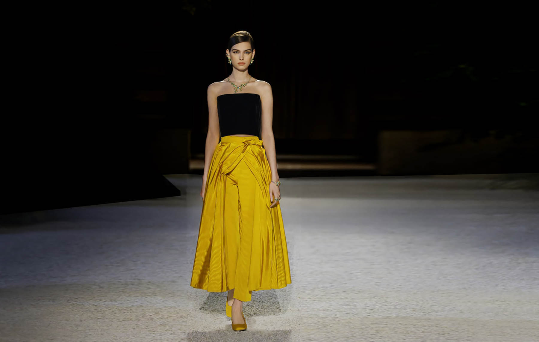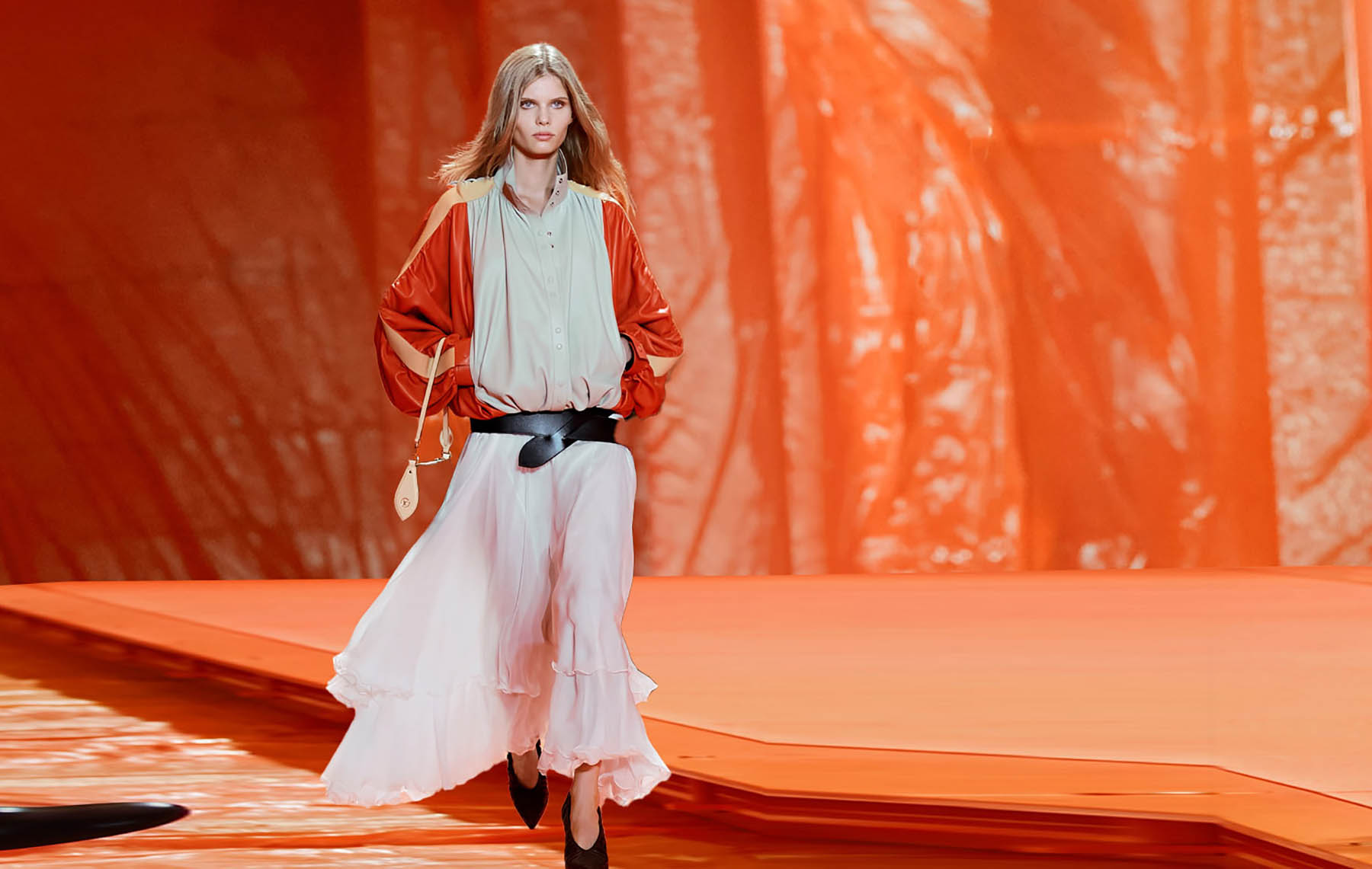 Las colecciones Primavera-Verano 2025 evocan un romanticismo moderno. El regreso de siluetas amplias y fluidez arquitectónica, como mangas que se extienden en túnicas ligeras o abrigos de tweed con cuellos en piel de oveja, revelan una nostalgia bien dirigida. Los guantes largos vuelven como símbolo de sofisticación sin tiempo, y las texturas —desde el lino lavado hasta la organza estructurada— articulan una narrativa donde el cuerpo no solo viste: dialoga con su historia.